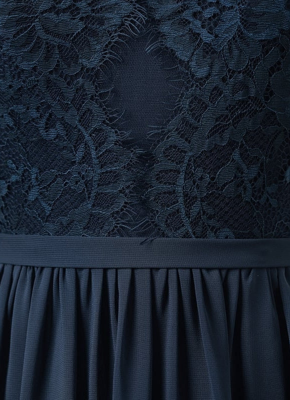 Robe De Soirée Cérémonie Élégante en Mousseline Bleu Marine