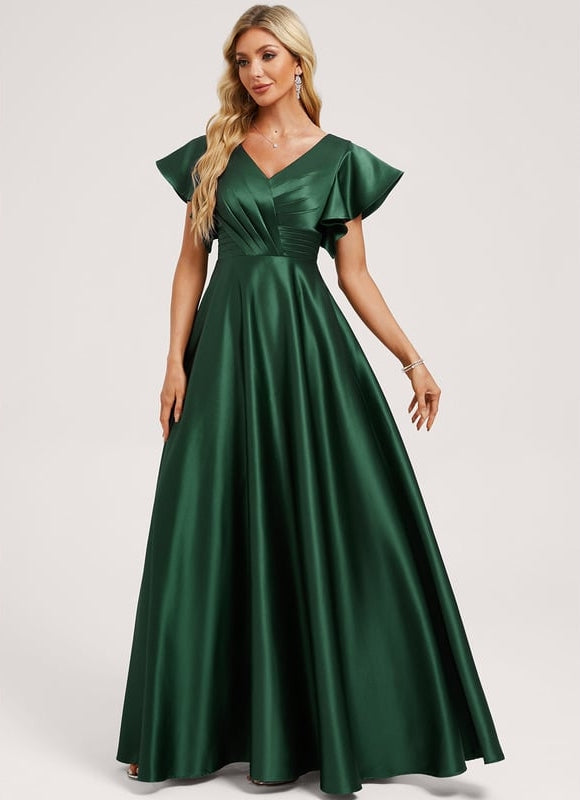 Robe De Soirée Cocktail Longue Verte Satinée - L'Élégance Intemporelle