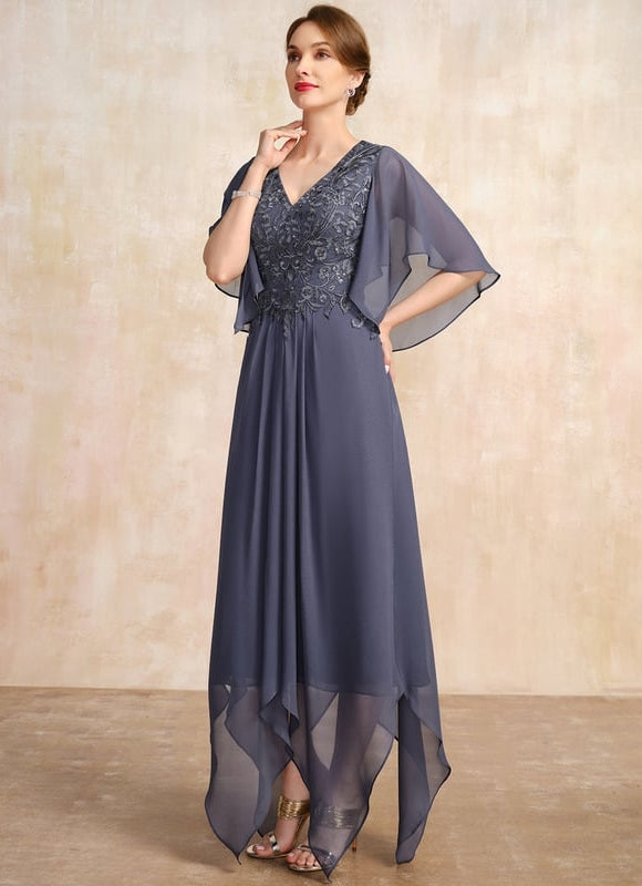 Cette Robe de Soirée Éclat De Grâce arbore une silhouette trapèze intemporelle, flatteuse pour toutes les morphologies, elle assure une aisance inégalée tout en sublimant votre silhouette. Son élégant col en V met en valeur le décolleté avec goût, tandis que le dos en V assorti ajoute une touche de sophistication et de raffinement lorsque vous vous retournez. La longueur asymétrique, caractéristique unique de cette pièce, crée un mouvement aérien et dynamique, attirant le regard sur vos pas avec grâce. De plus, son soutien-gorge intégré vous offre un maintien optimal et une tranquillité d'esprit, vous permettant de danser et de vous déplacer librement sans vous soucier des sous-vêtements. Une conception sans fente sur la jambe garantit une allure classique et pudique.