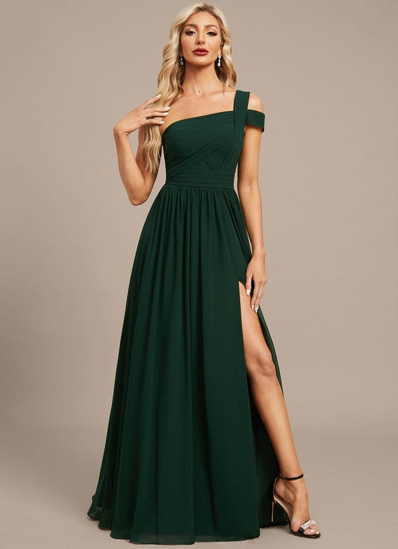 Plongez dans un univers de raffinement avec notre robe longue trapèze, sublimée par un décolleté épaules qui mettra en valeur votre port de tête avec grâce. Cette pièce unique, véritable Éclat Sombre Émeraude, est conçue en mousseline fluide, promettant une silhouette aérienne et un mouvement captivant à chaque pas. Les détails plissés apportent une touche de sophistication intemporelle, tandis que la fente sur la jambe révèle subtilement votre allure, ajoutant une dimension de sensualité discrète. Pensée pour celles qui recherchent une élégance sans effort, cette robe intègre un soutien-gorge pour un maintien parfait, vous assurant confort et confiance en toutes circonstances. Que ce soit pour une soirée spéciale, un gala ou un événement où vous souhaitez briller, cette robe est votre alliée pour laisser une impression mémorable. Laissez l'Éclat Sombre Émeraude vous envelopper.