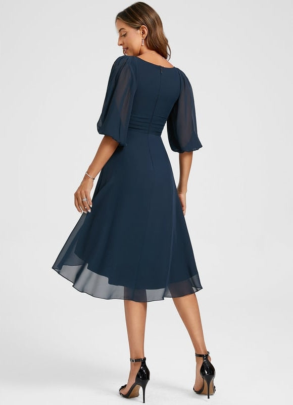 Robe Élégance Aérienne - La Sophistication en Mousseline Bleu Marine