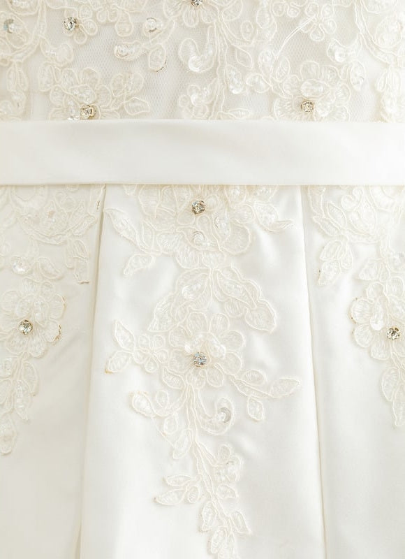 Chaque détail de cette robe a été pensé pour vous offrir une expérience vestimentaire exceptionnelle. Le corsage en dentelle fine, orné de motifs floraux délicats et de subtils éclats scintillants, épouse gracieusement votre silhouette, tandis que les manches longues en dentelle apportent une touche de sophistication et de mystère. Le col en V met subtilement en valeur votre décolleté, ajoutant une note sensuelle sans jamais tomber dans l'excès. C'est cependant la jupe en satin, avec sa coupe trapèze fluide et sa longueur asymétrique audacieuse, qui confère à cette Robe de Soirée Élévée Satinée son caractère unique. Le mouvement aérien du satin capture la lumière à chaque pas, créant un spectacle visuel captivant, tandis que la doublure complète assure une tenue impeccable et un confort absolu.