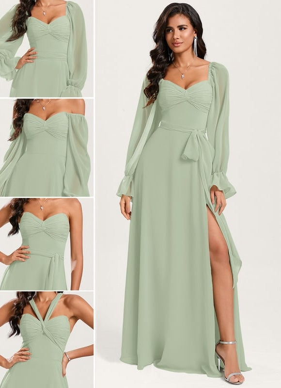 Découvrez la Robe Émeraude Aérienne, une création exceptionnelle qui allie sophistication et féminité. Cette robe longue en mousseline fluide capture parfaitement la lumière avec sa teinte vert sauge délicate, créant un effet visuel saisissant à chaque mouvement. Son décolleté en cœur sublimement drapé met en valeur votre silhouette, tandis que ses manches longues bouffantes apportent une touche romantique et moderne. La Robe Émeraude Aérienne transforme chaque apparition en moment magique, que ce soit pour un mariage, une soirée ou tout événement spécial où vous souhaitez rayonner d'élégance naturelle.