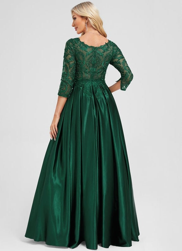 Laissez-vous séduire par cette magnifique robe émeraude envoûtante qui incarne l'élégance royale et la sophistication. Cette création exceptionnelle transforme chaque femme en véritable princesse grâce à sa silhouette princesse sublimement ajustée et sa couleur émeraude profonde qui capte la lumière avec une intensité fascinante. Le décolleté en V délicatement sculpté met en valeur votre féminité tandis que les manches trois-quarts en dentelle transparente ornées de perles scintillantes ajoutent une touche de mystère et de raffinement. Cette robe longue en satin luxueux épouse parfaitement vos courbes avant de s'évaser gracieusement jusqu'au sol, créant une silhouette d'une beauté saisissante qui ne laissera personne indifférent.