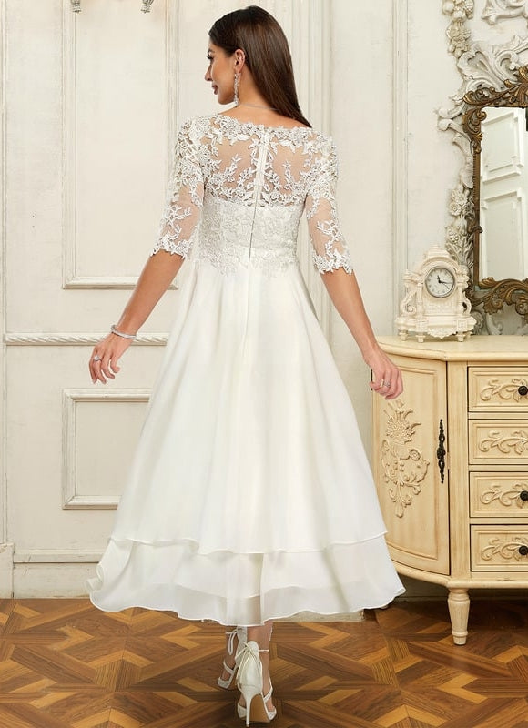 Chaque aspect de cette robe a été pensé pour votre confort et votre style. La mousseline de haute qualité, bien que légère, offre un tombé impeccable et une allure distinguée. Sa longueur asymétrique, rehaussée de volants délicats, ajoute une touche d'originalité et de dynamisme, dévoilant élégamment vos jambes tout en conservant une allure sophistiquée. Le dos est doté d'une fermeture éclair discrète pour un ajustement parfait. De plus, cette robe intègre un soutien-gorge avec armatures de maintien, vous assurant un confort optimal et une silhouette sublimée sans avoir besoin de sous-vêtements supplémentaires. Disponible dans une large gamme de tailles, du XXS (34) au L (48), elle est conçue pour s'adapter à toutes les morphologies.