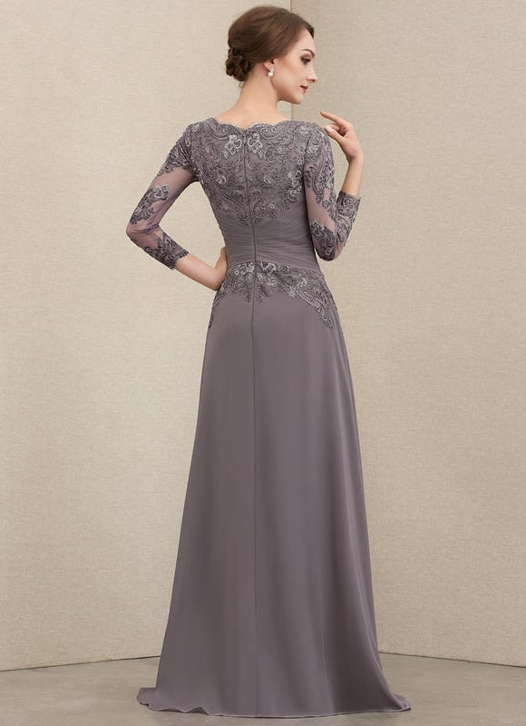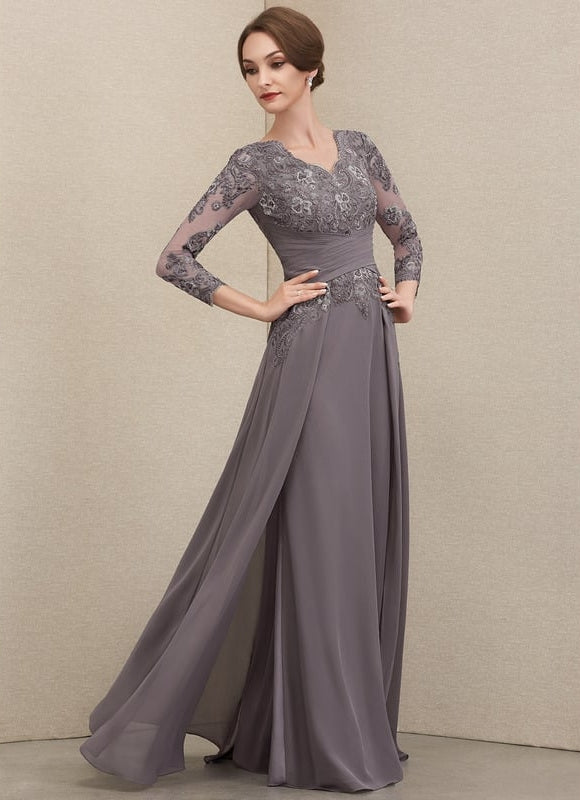 Robe Longue Gris Sophistiqué en Mousseline Plissée