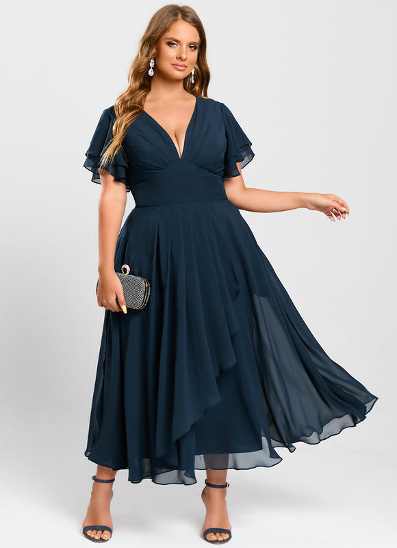 La Robe de Soirée Longue Bleue Mousseline À Volants : Votre Alliée Élégance