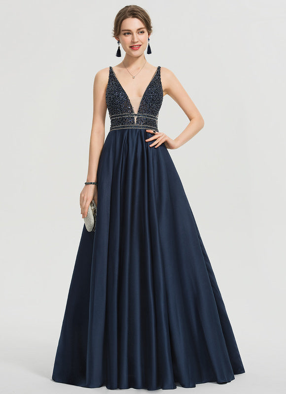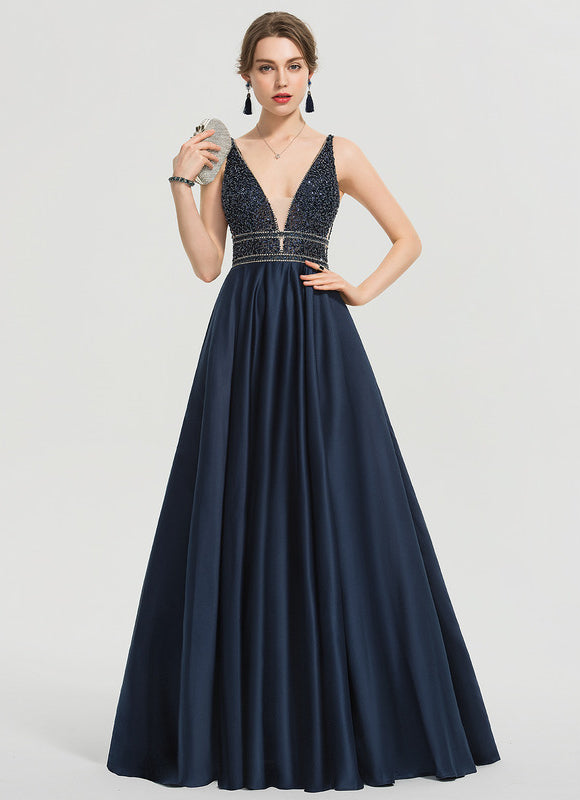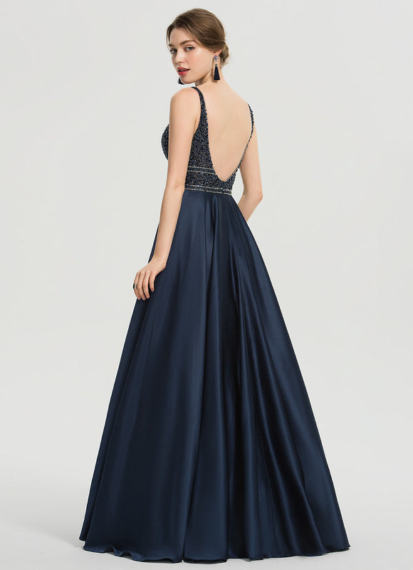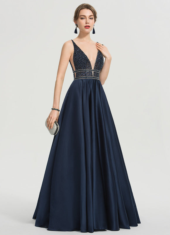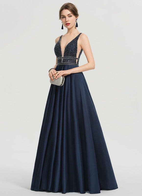 Robe de Soirée Longue Bleue Princesse Perles Paillettes