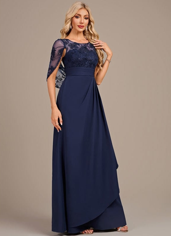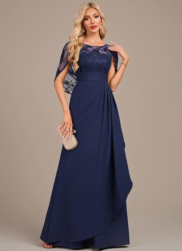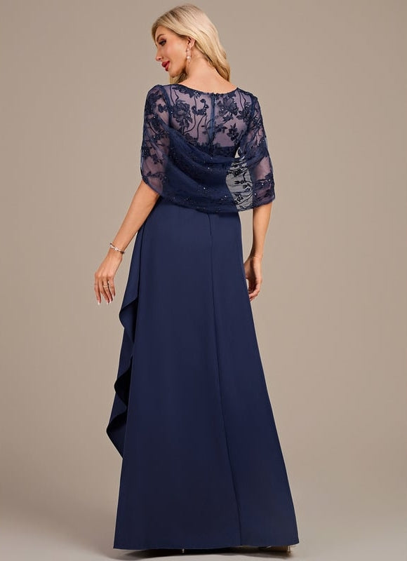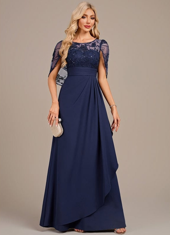 Cette robe longue élégante en bleu marine profond transforme chaque femme en véritable déesse de la soirée. Son buste orné de dentelle délicate et de paillettes scintillantes capture la lumière à chaque mouvement, créant un effet magique qui ne laisse personne indifférent. La coupe trapèze fluide épouse parfaitement les courbes tout en offrant une liberté de mouvement absolue, tandis que les manches cape en tulle transparent ajoutent une touche de mystère et de sophistication. Cette robe longue élégante est conçue pour les femmes qui refusent de passer inaperçues et souhaitent incarner l'élégance intemporelle lors de leurs événements les plus précieux.