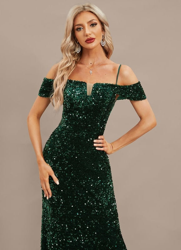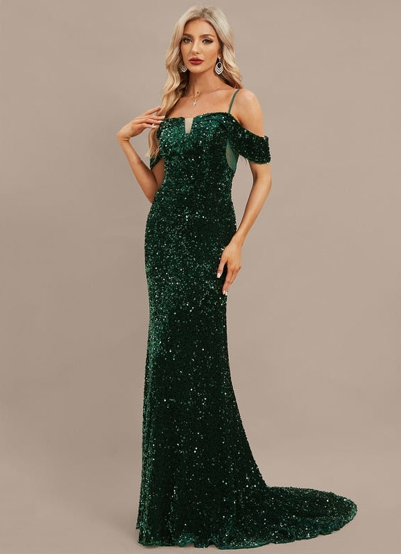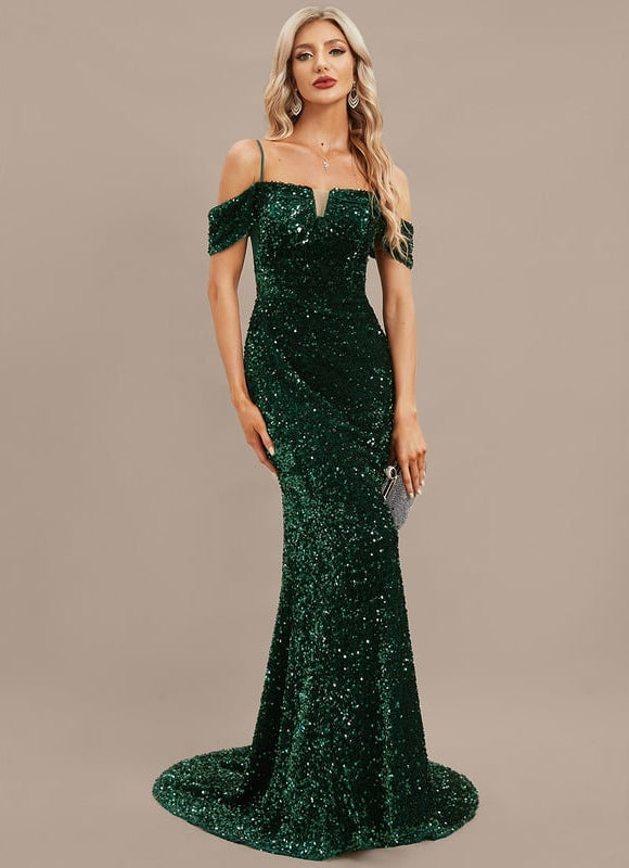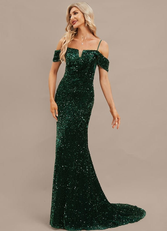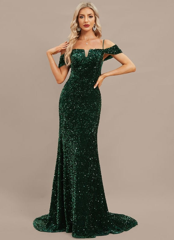 Laissez-vous envoûter par cette magnifique robe Lueur Émeraude qui transformera chaque instant en moment magique. Cette création exceptionnelle marie à la perfection l'éclat des paillettes et la sophistication d'une coupe sirène pour vous offrir une silhouette à couper le souffle. Le tissu entièrement pailleté capture et reflète la lumière sous tous les angles, créant un jeu d'ombres et de reflets qui sublimera votre beauté naturelle. Sa couleur émeraude profonde évoque le mystère et l'élégance, tandis que la coupe ajustée épouse parfaitement vos courbes avant de s'évaser gracieusement vers le bas. Cette robe longue avec traîne vous garantit une entrée remarquée lors de vos événements les plus prestigieux.