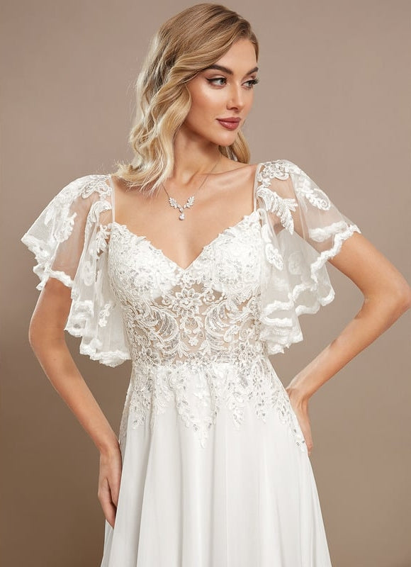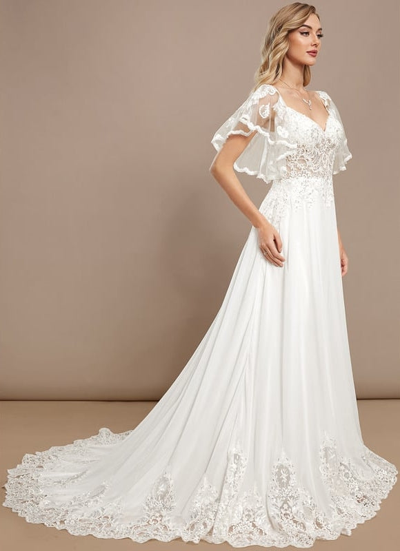 Découvrez la magie de notre robe de mariée Lueur Évanescente, une création qui capture parfaitement l'essence de la féminité moderne. Cette robe princesse en mousseline délicate vous enveloppera d'un voile de douceur et d'élégance. Ses manches courtes vaporeuses créent un effet romantique unique, tandis que son décolleté en V sublime votre silhouette avec une grâce naturelle. Les paillettes subtiles accrochent la lumière à chaque mouvement, créant cette lueur évanescente qui vous rendra inoubliable le jour J. La traîne majestueuse ajoute une dimension théâtrale à votre entrée, transformant votre marche vers l'autel en un moment cinématographique où tous les regards convergeront vers vous.
