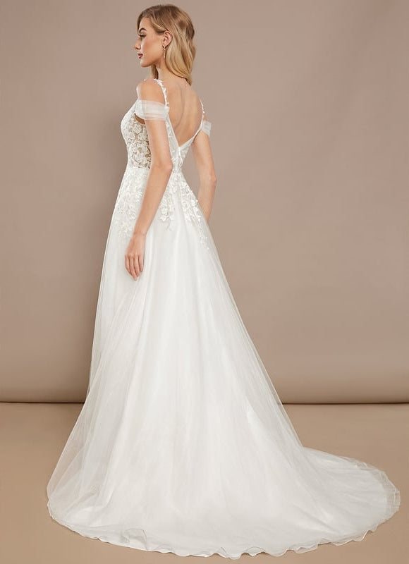 Chaque élément de notre robe "Lumière Sereine" a été pensé pour vous offrir une expérience inoubliable. Le tissu, une délicate dentelle, apporte une touche de romantisme et de sophistication. Sa forme princesse, emblématique de la féminité et du conte de fées, met en valeur la taille et s'évase élégamment pour une silhouette majestueuse. Le décolleté épaules dénudées ajoute une touche sensuelle et raffinée, dévoilant subtilement votre peau. Longue et fluide, cette robe est une invitation à la danse, à la légèreté et à la célébration. Pensée pour toutes les saisons grâce à sa doublure intégrale et son soutien-gorge intégré, elle vous assure un confort optimal tout au long de votre événement. Le dos en V apporte une touche moderne et audacieuse à ce chef-d'œuvre de la Lumière Sereine.