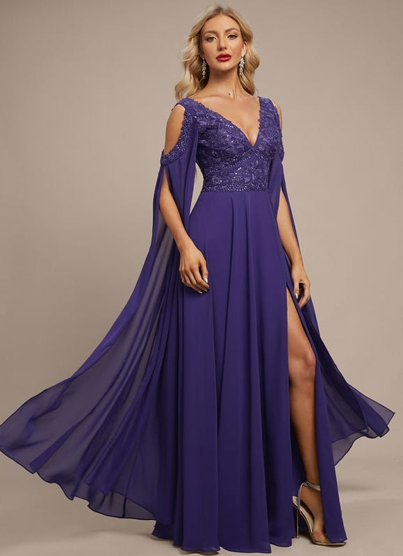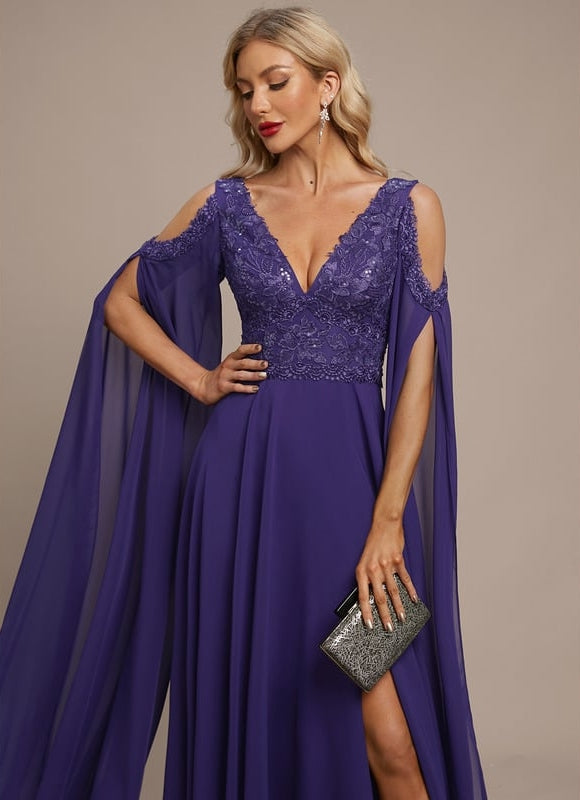 Plongez dans les détails qui font de cette robe une pièce unique. Sa forme trapèze classique flatte toutes les silhouettes, offrant confort et élégance. Le col en V profond met en valeur votre décolleté avec raffinement, tandis que le dos en V ajoute une touche de sensualité discrète et captivante. L'élément le plus spectaculaire est sans doute la fente audacieuse sur la jambe, qui non seulement facilite vos mouvements mais révèle aussi subtilement votre jambe à chaque pas, ajoutant une touche de mystère et de séduction. Les manches ouvertes et fluides qui tombent des épaules créent un effet de cape léger et aérien, renforçant l'idée d'un « envol » et vous donnant une allure majestueuse. De plus, un soutien-gorge intégré assure un maintien parfait et un confort optimal tout au long de votre événement, vous permettant de danser et de profiter sans aucune contrainte. C'est la Robe de Soirée Magnifique Envol par excellence pour celles qui osent se démarquer.
