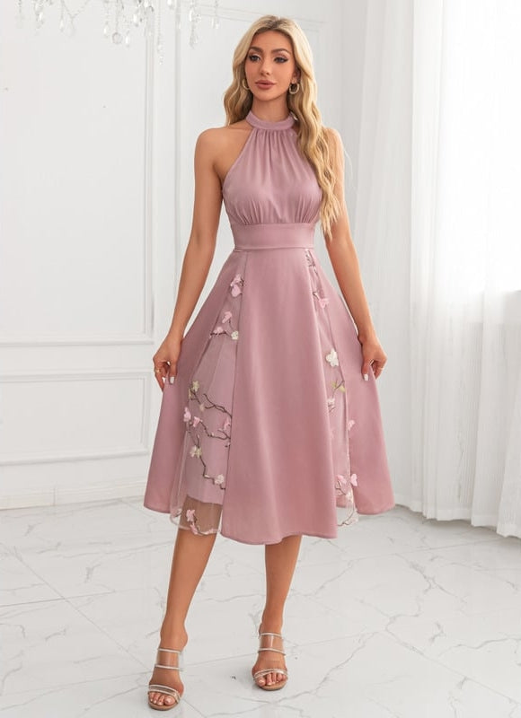 Cette magnifique robe midi florale satinée incarne l'élégance féminine avec une touche de romantisme moderne. Confectionnée dans un somptueux tissu jacquard d'un rose poudré délicat, elle vous enveloppe d'une douceur soyeuse qui caresse votre peau à chaque mouvement. Sa coupe trapèze flatteuse épouse harmonieusement vos courbes tout en offrant une liberté de mouvement incomparable. Le col licou sophistiqué met en valeur votre décolleté et vos épaules, créant une silhouette féminine et raffinée qui ne manquera pas de faire tourner les têtes lors de vos occasions spéciales.
