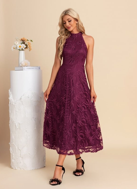 Découvrez cette magnifique robe orchidée chic qui incarne parfaitement l'élégance moderne. Sa couleur bordeaux profonde rappelle les nuances sophistiquées de l'orchidée, tandis que sa dentelle délicate crée un jeu de transparence raffiné. Cette robe midi au col licou sublime votre silhouette grâce à sa coupe trapèze flatteuse qui s'évase gracieusement. Le tissu en dentelle texturée offre une sensation douce contre la peau, tandis que la doublure complète garantit un confort optimal tout au long de la journée. Son zip arrière discret facilite l'enfilage, et l'absence de soutien-gorge intégré vous permet de choisir le maintien qui vous convient le mieux.