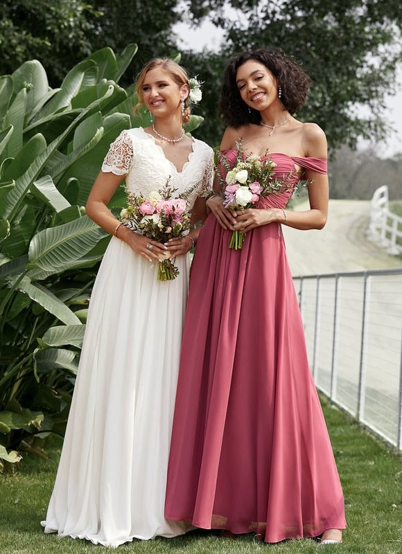 Chaque élément de cette robe a été pensé pour sublimer votre silhouette et garantir une allure parfaite. Sa coupe trapèze flatte toutes les morphologies, soulignant votre taille avant de s'évaser avec élégance pour une silhouette équilibrée. Le col épaule dénudée met en valeur votre décolleté et vos épaules avec une touche de sensualité raffinée, tandis que les détails à volants ajoutent une dimension texturée et un charme irrésistible à votre mouvement. La longue jupe, dotée d'une fente subtile sur la jambe, offre une liberté de mouvement et un aperçu séduisant à chaque pas. Grâce à son soutien-gorge intégré et ses armatures de maintien, vous bénéficiez d'un soutien parfait et d'une silhouette impeccable, sans compromis sur le confort. Le dos zippé assure un enfilage facile et une finition nette, pour une préparation sans stress.