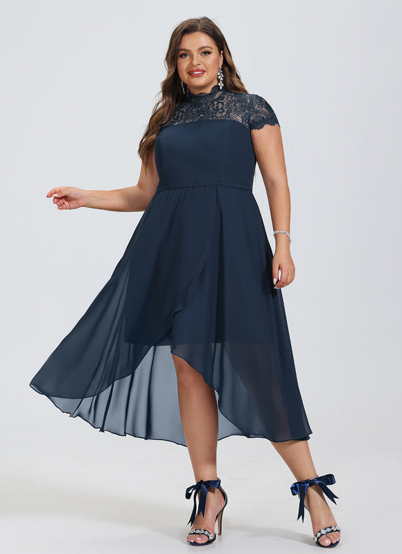 Chaque élément de cette Robe de Soirée Sculpture Chic a été pensé pour sublimer votre allure. La dentelle délicate qui orne le col montant et les épaules ajoute une dimension romantique et sophistiquée, créant un contraste sublime avec la légèreté de la mousseline. Le design asymétrique de l'ourlet n'est pas seulement tendance, il crée également une dynamique visuelle qui allonge la silhouette et apporte une touche de modernité inattendue. Facile à enfiler grâce à son zip discret au dos, cette robe vous assure un confort optimal tout au long de la soirée, vous permettant de danser et de socialiser sans contrainte. Que ce soit pour un gala, un mariage ou une soirée cocktail, elle est la pièce maîtresse qui vous garantira une présence inoubliable.