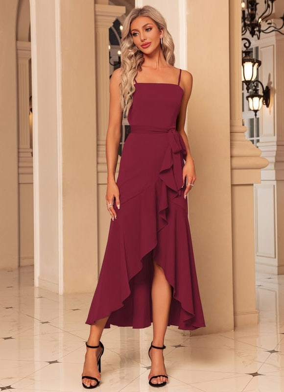 Cette Robe Sirène Asymétrique a été pensée dans les moindres détails pour vous offrir un confort optimal et un style incomparable. Le tissu en polyester léger et fluide procure une sensation agréable sur la peau, idéale pour les chaudes journées d'été. Sa coupe sirène met en valeur vos formes tout en vous assurant une liberté de mouvement. Le col carré apporte une touche de sophistication classique, tandis que les volants ajoutent une dimension romantique et aérienne à l'ensemble. Avec sa longueur asymétrique et son style "faux portefeuille", cette robe est non seulement tendance mais aussi incroyablement flatteuse pour toutes les morphologies. La ceinture incluse permet de cintrer la taille pour une silhouette encore plus élancée, faisant de cette robe un véritable atout charme.